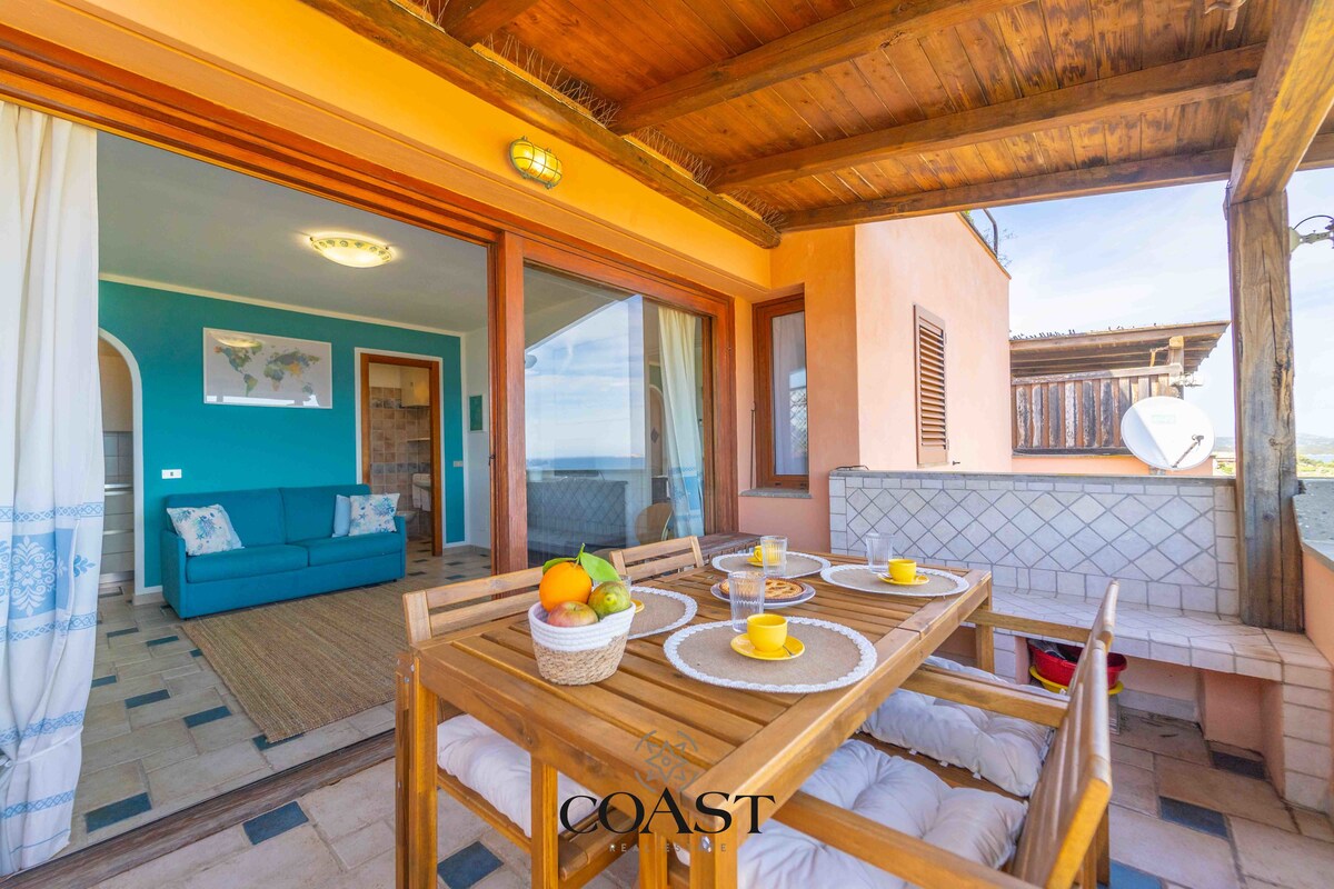 Apartamento aconchegante com terraço com vista para o mar, localizado em um condomínio residencial tranquilo cercado por vegetação, com parquinho para crianças e quadras de basquete, futebol e tênis. A apenas 500 metros da bela praia de Rena Bianca, uma das joias da Costa Smeralda. Perfeito para famílias e para quem busca relaxamento em meio à natureza e a um mar cristalino