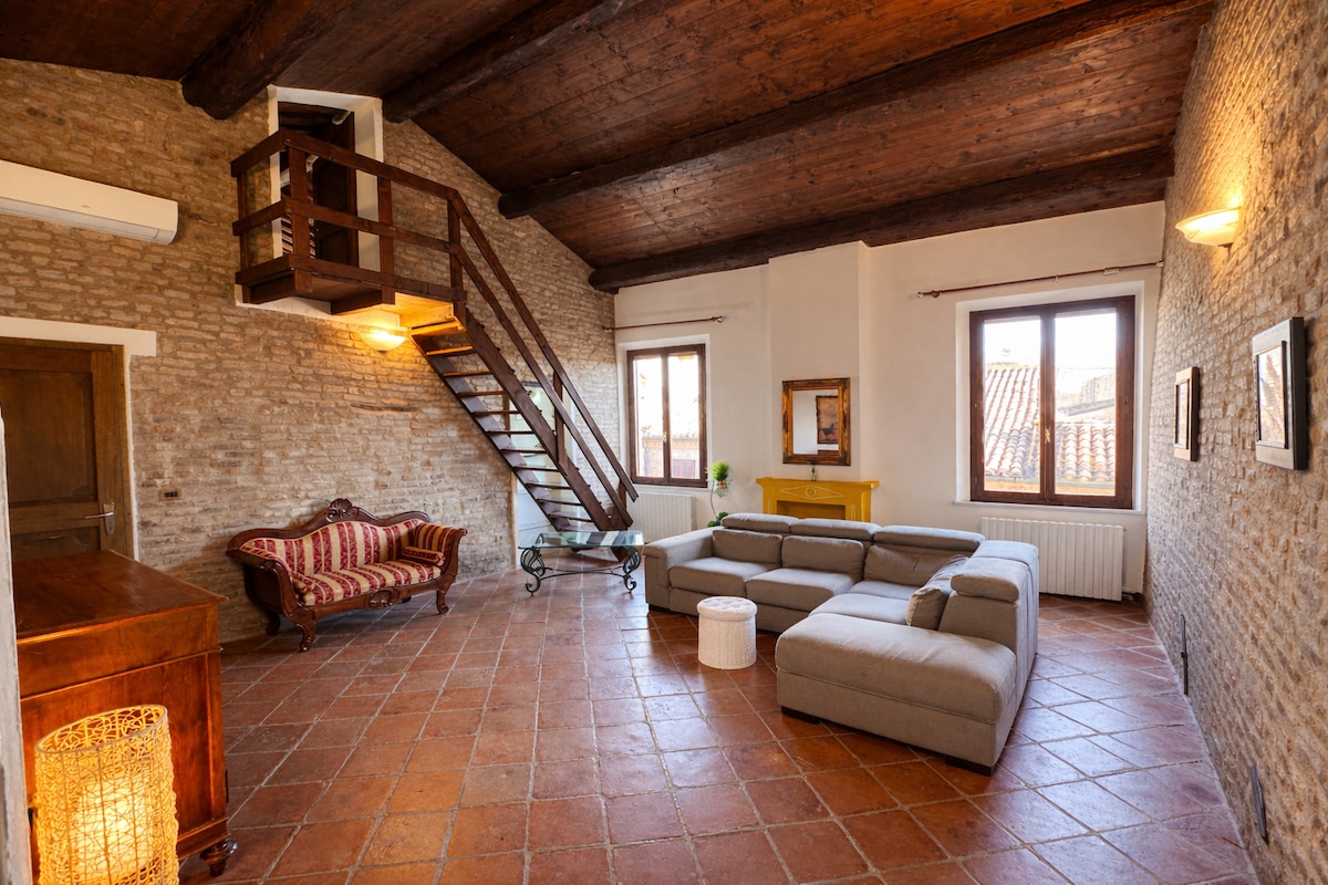 Trascorri il tuo soggiorno in un accogliente ed accessoriato bilocale mansardato in una palazzina signorile di due piani in pieno centro. La zona è silenziosa ed ideale anche per soggiorni di lavoro. Posto auto in parcheggio gratuito a 10m oppure a pagamento a 5min a piedi