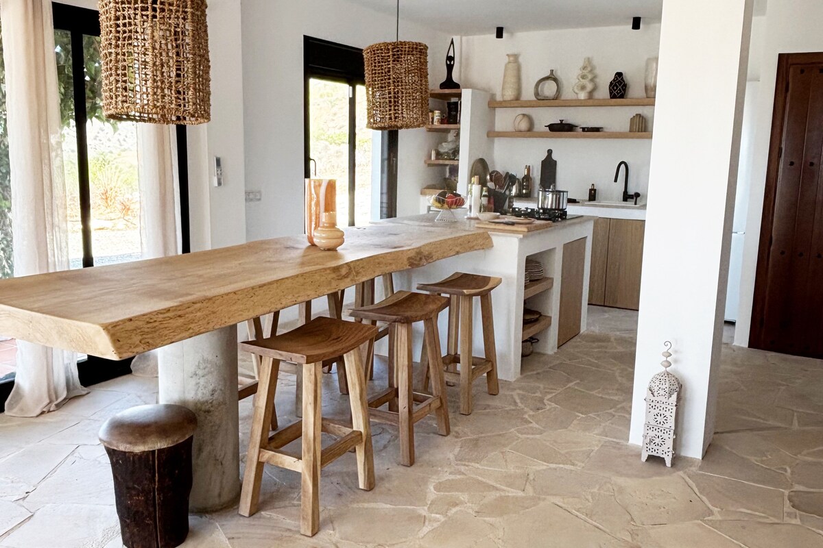 Relaxe em um local único que combina arquitetura tradicional e contemporânea, a 20 minutos da costa e a 40 minutos do aeroporto. A casa foi projetada para conectar os diferentes quartos com o exterior. O uso de materiais naturais como cal, madeira, cerâmica e seixos locais é perfeito para desfrutá-lo descalço. Sua localização permite que você jante e caminhe pela cidade e, ao mesmo tempo, sinta como se estivesse na natureza, apreciando as vistas das colinas enquanto se refresca na jacuzzi do terraço.