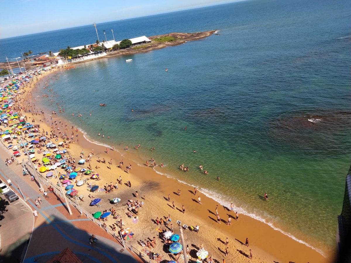 Apartamento de frente para a Praia das Castanheiras e próximo às Praias dos Namorados, da Areia Preta e das Virtudes. Não é necessário tirar o carro da garagem , pois próximo ao prédio tem farmácias, restaurantes, sorveterias, feira de artesanato, supermercado, padaria, bancos, academia, igreja, centro comercial diversificado, quiosques nas praias e o famoso "Beco da Fome", onde contempla diversos barzinhos e restaurantes.