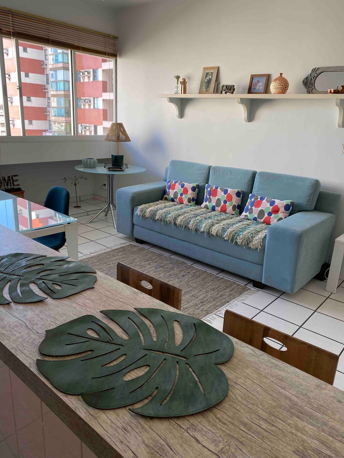 O apartamento charmoso de localização excelente, perto da praia, restaurantes e de tudo que é preciso! Uma sala ampla com luz natural; cozinha equipada; três quartos, uma suíte com cama de casal, um quarto com duas camas de solteiro e um terceiro quarto com um beliche.Todos os quartos tem ar-condicionado Split; escrivaninha para home office, ofertemos roupas de cama e banho ; pequena área de serviço com máquina de lavar é pet friendly e estamos dispostos a ajudar no que precisa.