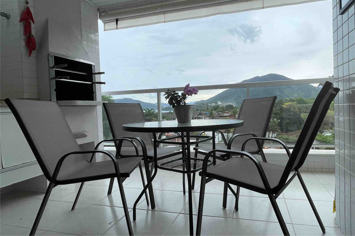 Apartamento novo/reformado, com vista incrível para o mar na melhor localização de Ubatuba. Perto de tudo e ao mesmo tempo em meio a natureza. 1 quarto com cama de casal e vista para o mar Sala integrada com a cozinha Piscina no condomínio. Ar condicionado Wi-fi rápido de 200mb Vaga de garagem Portaria 24h Fica na Prainha do Matarazzo e a 5 minutos da Praia do Perequê-Açu. Moderno e com uma vista paradisíaca. Por estarmos próximos ao Café de La Musique, pode ter barulho nos finais de semana.