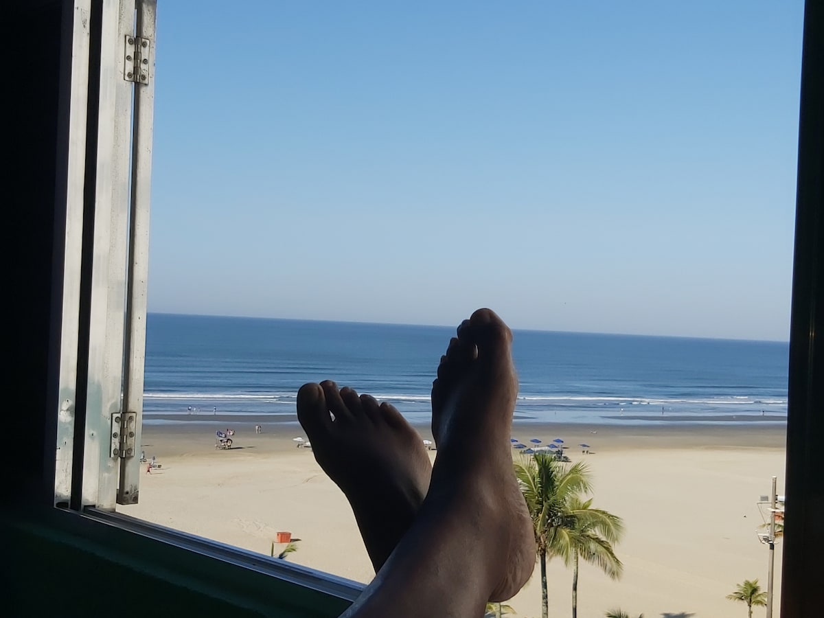 Vista privilegiada. De frente por mar, atravessou a rua está na areia da praia. Apto de 40 m2, arejado, claro, móveis práticos. Espaço aberto para melhor ventilação entre os cômodos . Wi-Fi Portaria 24 horas sem vaga na garagem mas facilidade de vagas nos arredores. Apto no 12° andar de frente para o mar. Utensílios de cozinha. Supermercado, padaria e outros comércios próximos