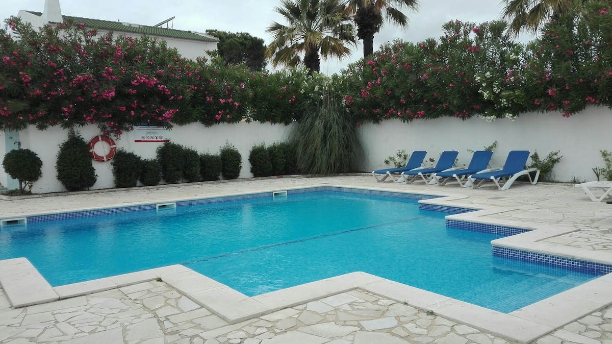 Apartamento com capacidade para 5 pessoas inserido em condomínio fechado com 2 piscinas, jardim e estacionamento gratuito à entrada do prédio. A praia da Oura ou a Praia Stª Eulália estão a +/-800 metros (10/15 minutos a pé) A Rua da Oura (Strip), rua de animação nocturna situa-se a 3 minutos a pé. Não precisa de carro para se deslocar na cidade, está próximo de restaurantes, comercio, supermercados e todos os serviços.