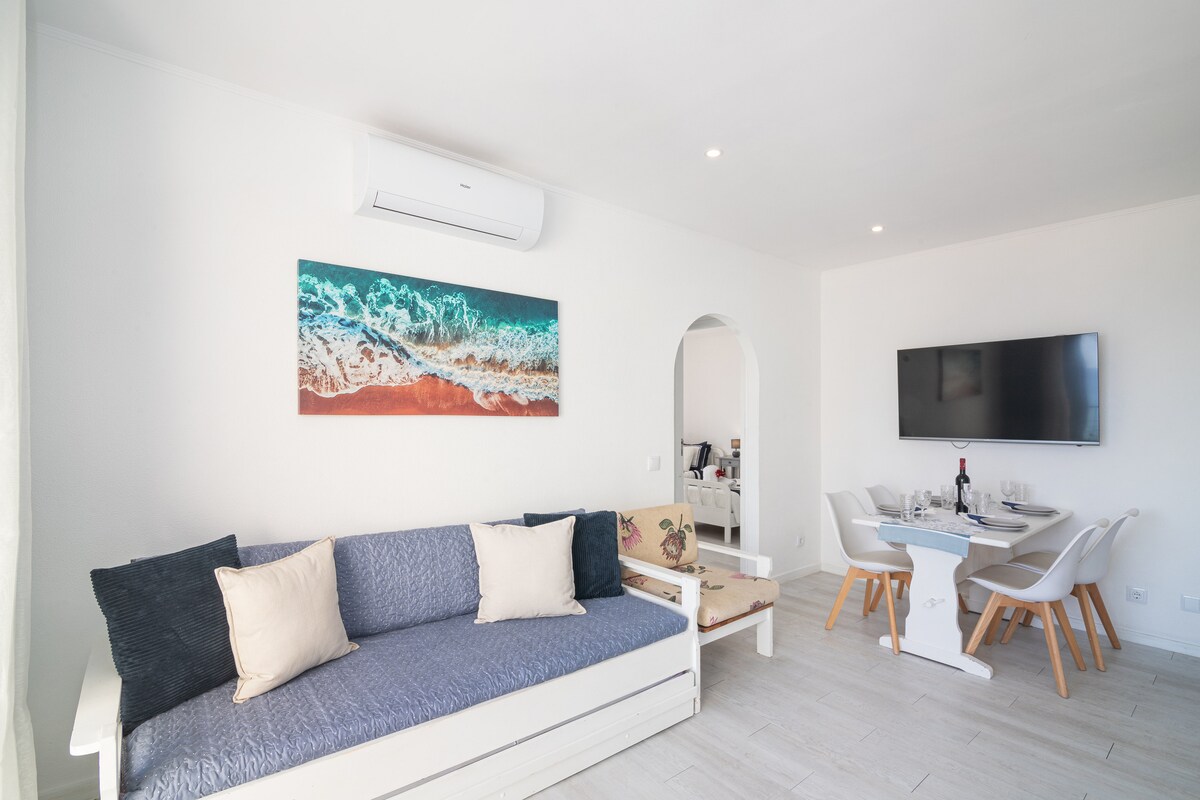 *The perfect retreat in Porto Mos for families, couples, and digital nomads!* 🌟 Come and discover our charming one-bedroom apartment, completely renovated, located just a 5-minute walk from the stunning Porto Mos beach! With spectacular views of the beach, our space provides the ideal atmosphere for relaxing and soaking up the sun. The large terrace with a bar-style table is the perfect spot to enjoy the incredible views, whether during a refreshing breakfast or a romantic sunset.