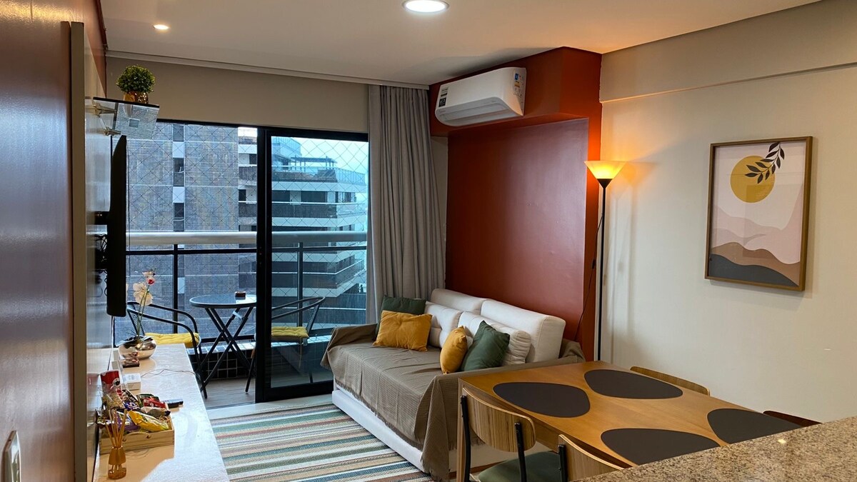Apartamento de dois quartos (sendo um deles, uma suíte com closet) e temos uma banheiro social. Todo projetado e pensado para quem gosta de LUXO, SOFISTICAÇÃO E CONFORTO! Possui TVs smarts com canais abertos e Netflix, além de ar condicionado nos quartos e na sala. Cozinha equipada com utensílios e eletrodomésticos, além de um purificador de água com água natural e gelada. Com uma ampla varanda com vista mar incrível, também possui varanda na lateral, o que proporciona ventilação na unidade.