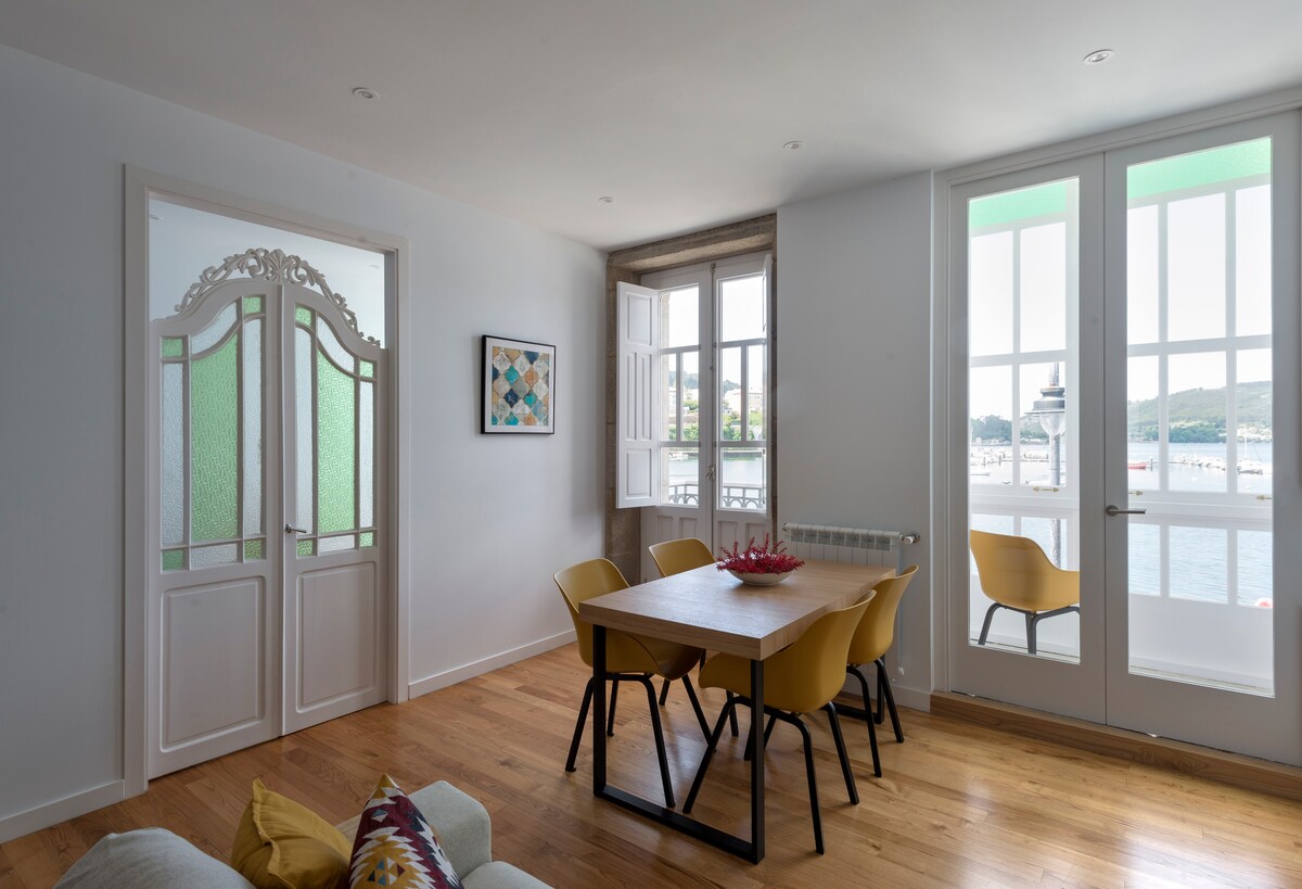 Em Canido, com vista para a Malata e o pôr do sol, reformado e equipado com tudo o que você precisa para uma estadia confortável. Você desfrutará de uma espaçosa sala de jantar com smart TV de 50", cozinha americana com cafeteira Nespresso. Banheiro com chuveiro, galeria coberta virada para o nascer do sol, onde você pode sentar-se um segundo para tomar um café e dois quartos aconchegantes e confortáveis com belos detalhes. Janelas oscilantes e aquecimento programável. Segundo andar sem elevador. Fácil estacionamento na região.