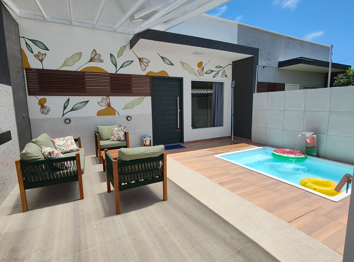 Linda casa com piscina à beira mar de Tamandaré