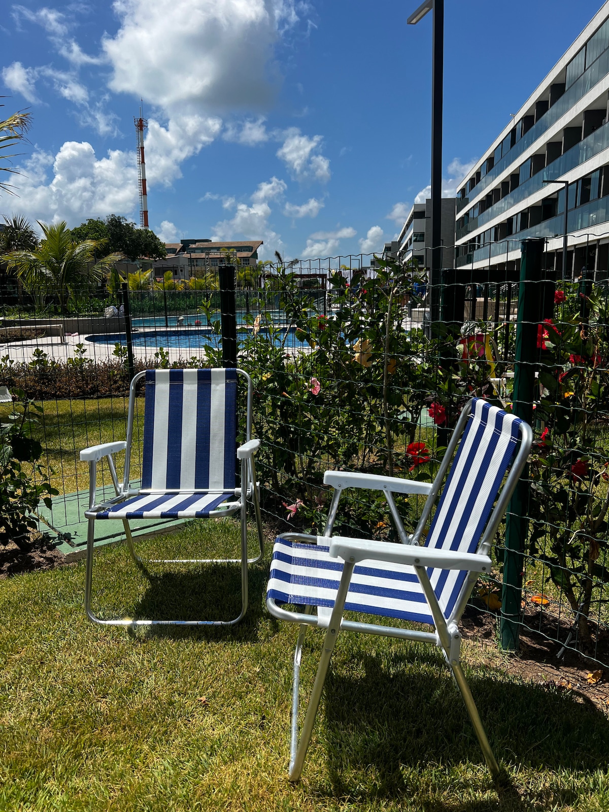 Viva momentos inesquecíveis em nosso flat moderno, com cama queen, sofá-cama, cozinha completa e varanda com vista para a piscina. Descanse e aproveite uma estrutura com padrão de resort, que inclui piscinas, academia, restaurante, salão de jogos, brinquedoteca, parque infantil, coworking e recarga para carros elétricos. Conforto e praticidade para sua melhor experiência!