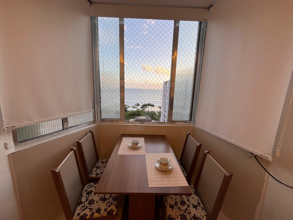 Esqueça suas preocupações neste lugar espaçoso e tranquilo. Apartamento reestruturado (reformado recentemente, banheiro e cozinha) decorado com mobília completa incluindo utensílios de cozinha, mesa e banho. Em frente a praia, com uma localização perfeita, perto de tudo como shopping, mercados, padarias, bares e restaurantes. Garagem garantida. É só entrar e curtir o momento.