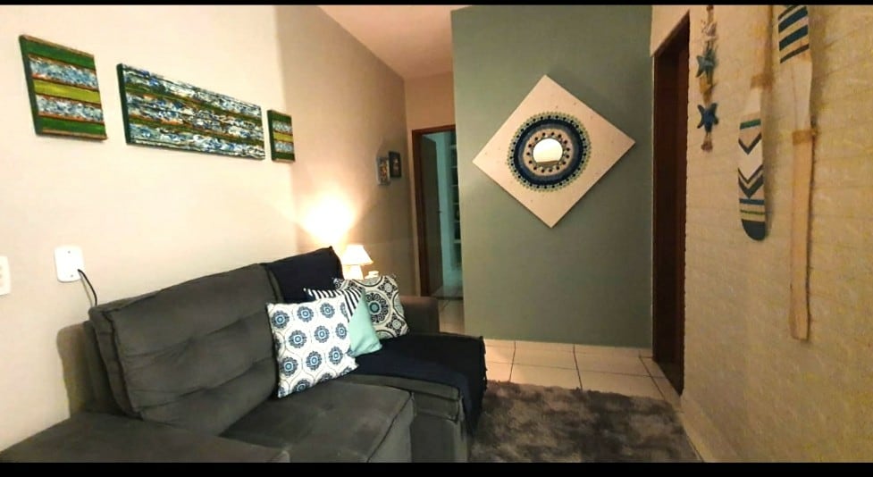 Lindo apartamento de frente para o mar com cômodos espaçosos, arejados e aconchegantes. São dois ambientes, ambos com ar condicionado e ventiladores de teto. A suíte possui uma cama casal “queen”, armário amplo e banheiro completo. Na sala tem sofá cama de ótima qualidade que pode ser usado tanto como cama casal, como duas de solteiro, smartv com pacote básico, mesa de jantar e banheiro completo. Os chuveiros são ótimos. A cozinha é tipo americana, totalmente equipada, e muito bem iluminada.