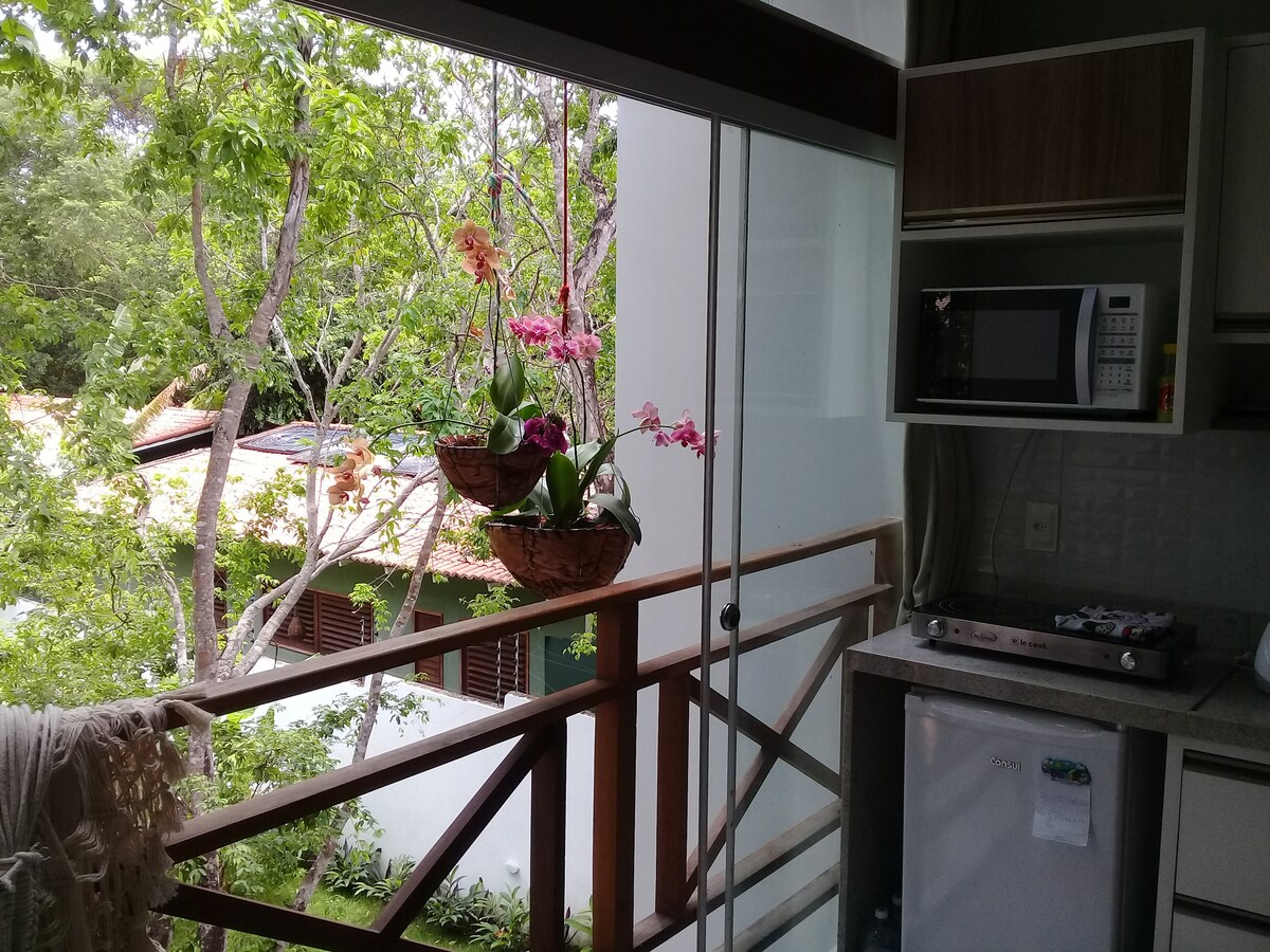 Flat aconchegante com trilha privativa para praia