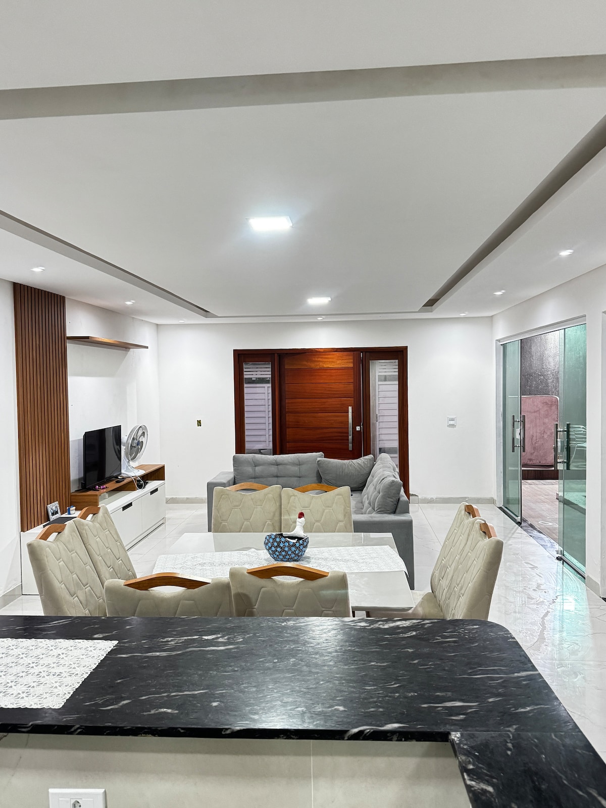 São 3 suítes amplas com ar-condicionado e tv smart em todos os quartos, sala com tv smart, cozinha completa, área gourmet com churrasqueira e tv smart e uma piscina privativa perfeita para momentos de lazer em família ou entre amigos. Acomoda até 6 adultos e 3 crianças que durma na mesma cama que os pais, com todo o conforto necessário para você se sentir em casa. Wi-Fi gratuito e garagem estão disponíveis para tornar sua estadia ainda mais prática e agradável.