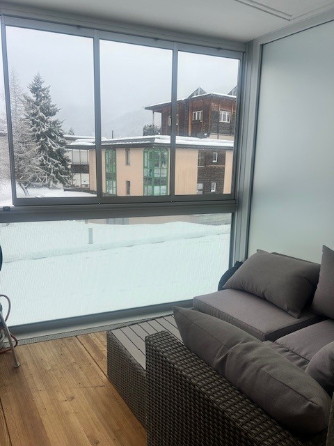 (Reg.-Nr. 14295) Gemütlich und sehr zentral gelegen mit schöner Aussicht ins Grüne. Helles Wohnzimmer, grosser Süd-Ost Balkon mit Esstisch und Lounge, Mehrfamilienhaus mit Lift und privaten Aussenparkplätzen, Tiefgarage mit direktem Hauszugang gegen Aufpreis (sFr. 10.-/Tag). Waschraum und Skikeller vorhanden. 2 Gehmin. zum Kongresszentrum, Schwimmbad, Golfplatz, Langlaufzentrum oder Migros Einkaufsmarkt. Mit dem Bus (Haltestelle vor der Tür) 3 Min. zur Parsennbahn 8 Min. zur Jakobshornbahn