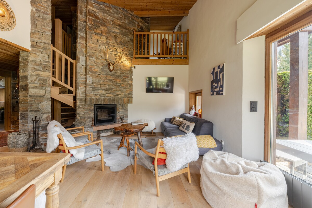 Adicione toras a uma lareira com uma enorme lareira de pedra e recline-se em um sofá rústico de madeira. Contemple a floresta alpina que envolve um chalé autêntico através das janelas panorâmicas. Retorne das pistas e relaxe em uma sauna de luxo em um banheiro com estilo de chalé. Um quarto de 25m2 com cama de casal, armários e guarda-roupa autêntico. Uma sala de estar aconchegante e espaçosa com janelas de vidro duplas com vista para o Monte Branco e lareira. E um sofá-cama que se converte em 2 camas de solteiro. Cozinha prática e totalmente equipada. Um banheiro em granito com chuveiro e sauna para 3 pessoas. Um terraço em frente à floresta e ao riacho (com visitas frequentes de veados — veja as fotos), com fonte e vista deslumbrante para o maciço do Monte Branco. O chalé é uma construção individual totalmente disponível e reservada para os hóspedes. Assim como o terraço e os arredores (um pequeno rio, uma ponte privada e acesso à floresta). Estou à disposição para qualquer dúvida. Na aldeia de Coupeau: Chalé autêntico na floresta acima de Les Houches, com vistas excepcionais para o maciço do Mont Blanc. À beira de um pequeno riacho com veados A 5 minutos de carro de Les Houches, a 10 minutos de Chamonix, a 1 hora de Genebra. Fácil acesso por estrada ao chalé. A 2 km de Les Houches e a 10 km de Chamonix. Estacionamento logo atrás do chalé Um chalé antigo totalmente reformado. Com todo o conforto moderno (incluindo sauna para 3 pessoas) e decoração de alto nível. Uma vista única sobre a cadeia do MontBlanc. O chalé fica na aldeia de Coupeau, na floresta acima de Les Houches, com vistas excepcionais do Mont Blanc. Fica a 5 minutos de carro de Les Houches, a 10 minutos de Chamonix e a uma hora de Genebra.