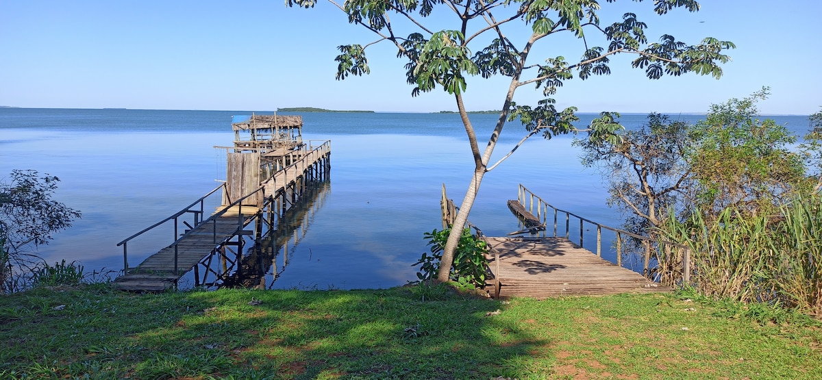 Casa Temporada,3 minutos de Carro até prainha da Orla e Pier, localizada em um Ambiente tranquilo para sua Família, passar dias num Ambientes de Natureza, e nadar nas Praias de Águas doce do rio Paraná, pescar e conhecer o Pôr do Sol mais Bonito do Brasil