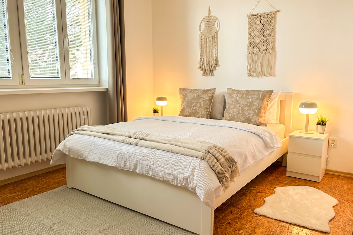 Experimente o charme da histórica Prešov em um apartamento iluminado e luxuoso no coração da cidade. Seja para romance, trabalho ou relaxamento, você terá conforto de hotel, estacionamento interno privativo, Wi-Fi rápido, Netflix e um interior elegante a poucos passos do centro da ação. O preço base é para 2 pessoas. Cada hóspede adicional + € 12 por noite, bebê grátis. A acomodação é para *1-4 hóspedes** (quarto com cama de 180 cm e sala de estar com sofá-cama de 140 cm). Acesso sem degraus (elevador).