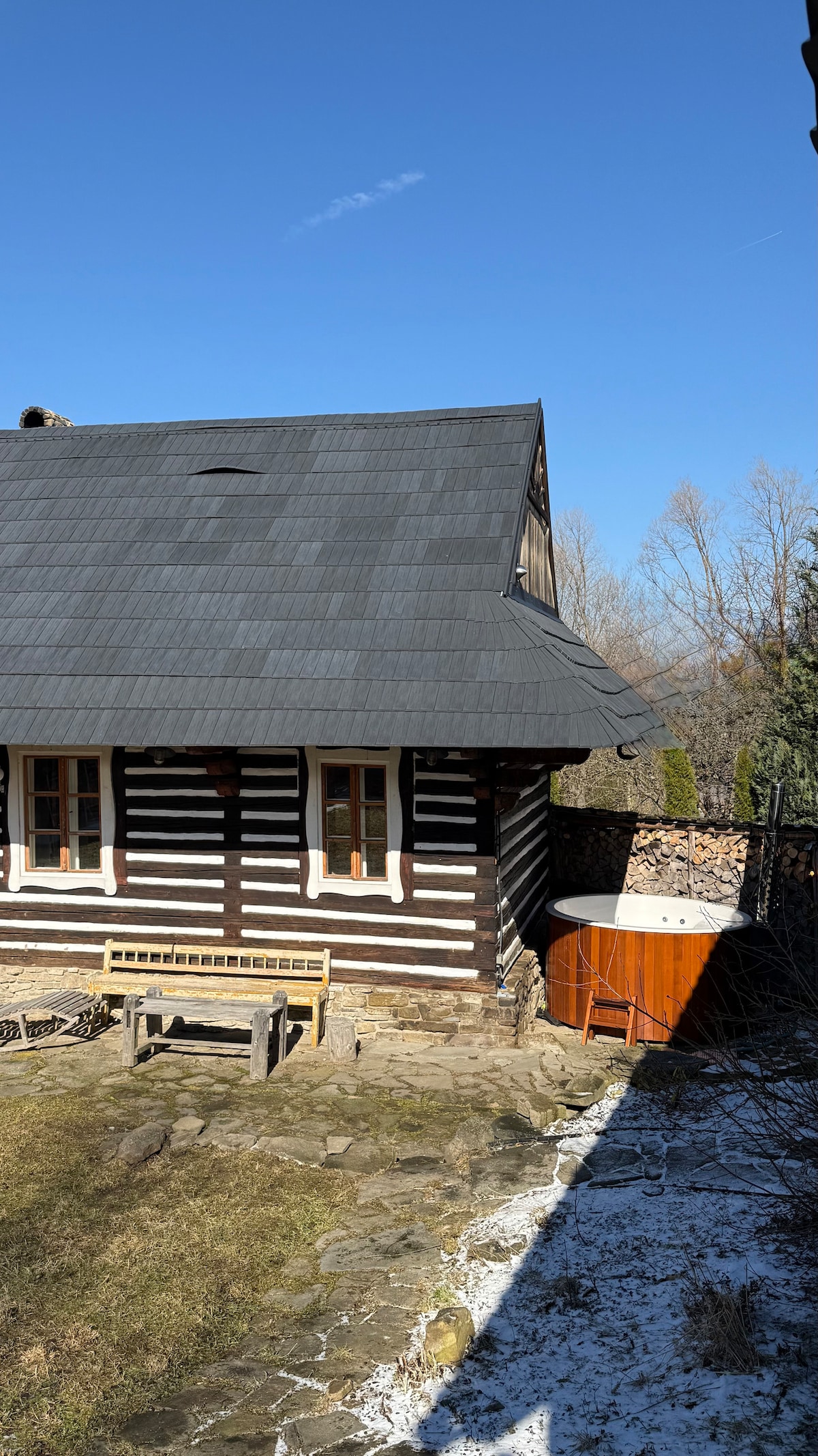 Discover our cozy mountain cabin with a jacuzzi hot tub and Finnish sauna, beneath the majestic Owl Rock, in the popular Slovak Paradise National Park. The cabin has the best location near tourist paths and river Hornad. Explore hiking and cycling trails that wind through valleys and canyons, near breathtaking waterfalls, try ladder routes, or head out to Tomasovsky Vyhlad with stunning views of High Tatras' peaks. And then, after a day of adventure find your sanctuary in our wellness cabin.