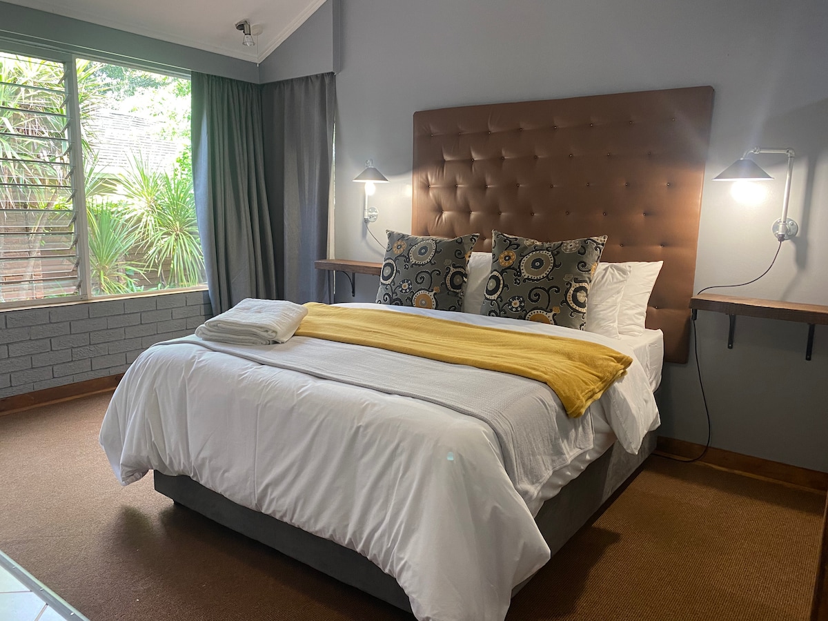 Em conformidade com os regulamentos de limpeza e hospedagem da Covid-19. Quarto em plano aberto recentemente renovado, separado da casa principal - oferecendo uma cama tamanho queen, banheira luxuosa, chuveiro e vaso sanitário separado. Este quarto tem sua própria área externa designada. Perto de: Hospital Kloof, parque de mountain bike e corrida em trilha Wolwespruit, Hospital Faerie Glen, Menlyn Maine, Shopping Menlyn, Sun Time Square Arena/Casino, N1, Ponte Lynnwood, The Club Centre, The Village - Hazelwood