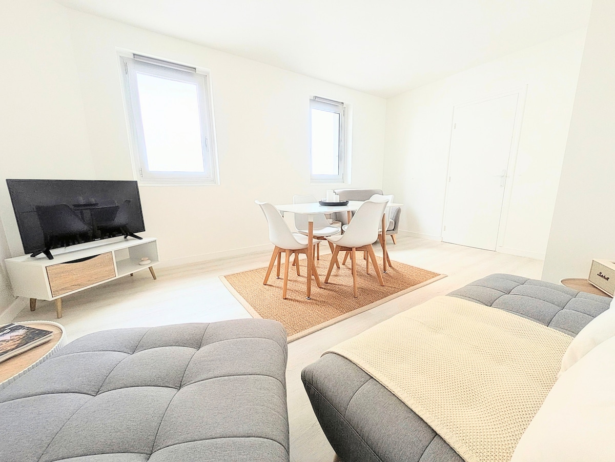 Welcome to L'IROIZH, a 30m² studio designed to offer you an unforgettable experience. Located right on the water, this haven of peace is in a quiet residence overlooking Concarneau's most beautiful beach, Les Sables Blancs. 180° sea view: enjoy an exclusive panorama every morning. Bed linen & towels provided ☺️ Independent entrance / key box Private parking space in front of the residence Ultra-fast fibre Wi-Fi: Stay connected or work from home
