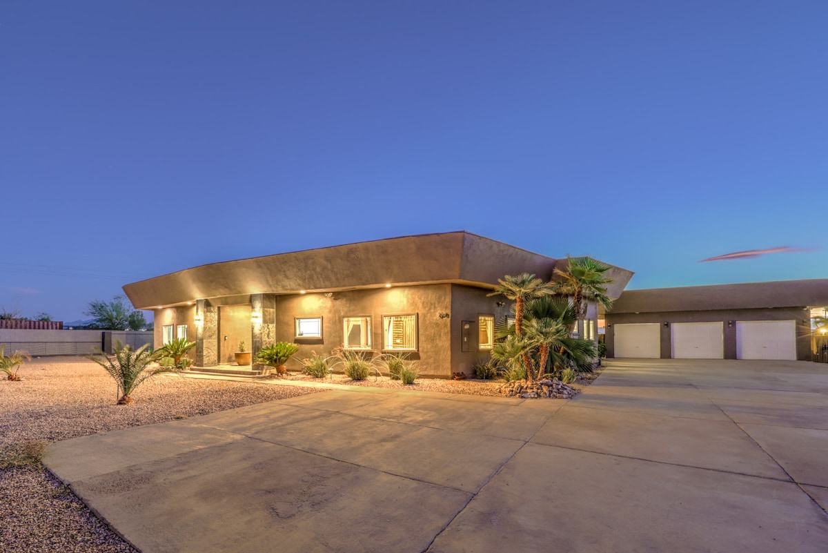 Fuja para o nosso oásis no deserto de 1 acre em Las Vegas! Nossa casa oferece uma mistura única de aconchego e emoção, com uma varanda com vistas deslumbrantes para as montanhas e um vislumbre da vibrante Las Vegas Strip. 1200 pés quadrados de espaço para até 4 pessoas, 22’ piscina 4’ de profundidade com escorregador, pickleball e basquete Desfrute de um curto campo de golfe par 3 bem no seu quintal, . Experimente a magia da paisagem do deserto, a uma curta distância de carro da movimentada Strip. Sua aventura espera por você neste refúgio no deserto
