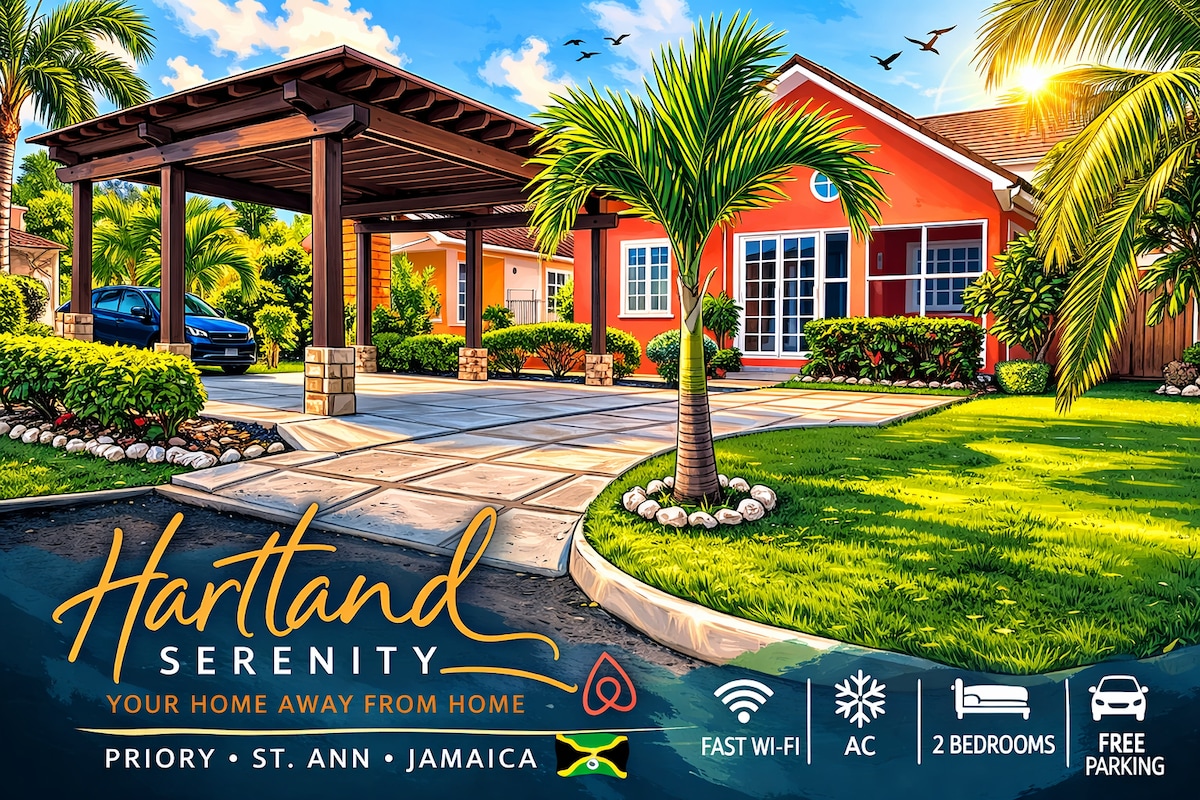 Entre em um belo espaço moderno projetado para relaxar e localizado no condomínio fechado de Hartland Estates. A uma curta distância de uma praia pública, supermercado, posto de gasolina, e o famoso pudim da Jamaica pode ser encontrado perto da residência. A acomodação fica a 5 a 15 minutos da maioria das atrações turísticas. Desfrute do seu café da manhã ou chá no pátio privado. Relaxe no pátio em nossa aconchegante rede. Esta vila é a sua porta de entrada para aventura e relaxamento. Nossa vila tranquila espera por você.