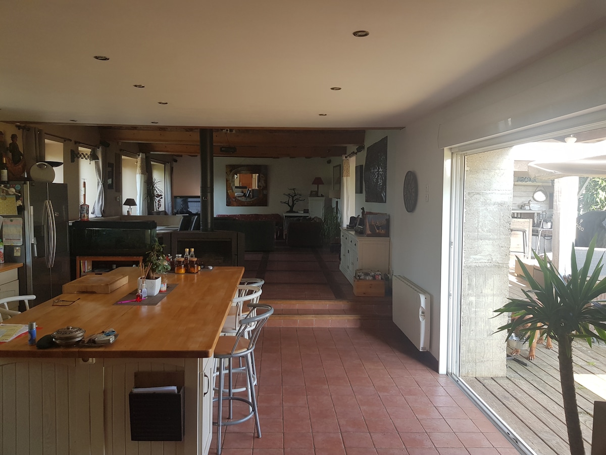 Esqueça suas preocupações e encontre sua serenidade em um ambiente verde, uma joia. Acalme-se e volte para a fonte garantida. Este espaçoso alojamento, em vegetação completa a apenas 13 km do hipercentro a 20 minutos do circuito, 200 m2 e 4000m2 de terreno fechado, sala de estar de 85 m2, 4 quartos, 2 casas de banho, bar ao ar livre sob o pátio e terraço tranquilo não negligenciado, na natureza e ao pé do homem.