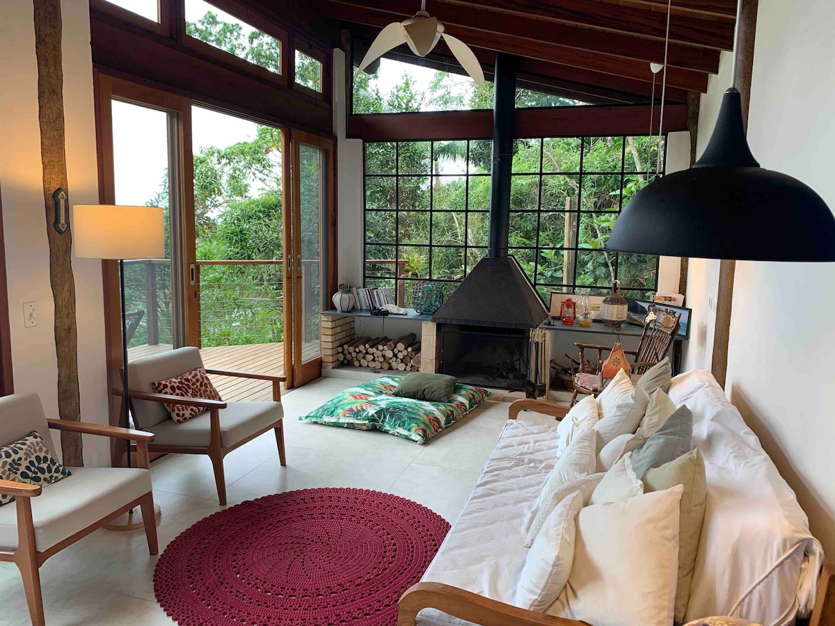 Esta casa nova está localizada acima das árvores dentro da Aldeia Rizoma, uma propriedade localizada a 15 minutos do centro histórico da cidade. A propriedade oferece uma academia ao ar livre, sauna (paga à parte), trilhas privadas e acesso a 5 cachoeiras privadas. O estúdio de um quarto possui uma cama king size, uma banheira de hidromassagem privada e uma cozinha totalmente equipada. Há uma cama extra que pode ser usada por uma terceira pessoa, com uma taxa adicional por noite.