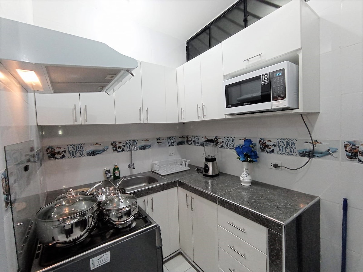 Bem-vindo ao nosso aconchegante mini apartamento, ideal para uma estadia confortável e tranquila! Localizado em uma área central de pudallpa, um espaço de um quarto totalmente equipado. Quarto: Uma cama de casal, armário, ar condicionado, ferro e TV. Kitchenet: com uma cozinha de 4 fornos e todos os utensílios necessários, sofá, geladeira e mesa com 2 cadeiras. Perfeito para casais, viajantes de negócios ou qualquer pessoa que esteja procurando um lugar tranquilo e central.