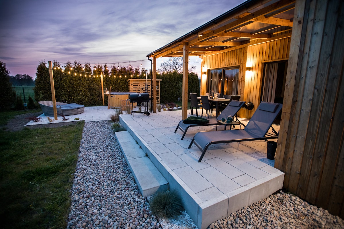 Duas casas localizadas em um terreno verde em Mieroszyno, com ar condicionado, cozinha equipada com máquina de lavar louça, fogão de indução e uma grande geladeira. Os terraços estão equipados com móveis e grelhas a gás. Os hóspedes têm acesso a uma jacuzzi e sauna a lenha, espreguiçadeiras, redes e uma fogueira, campo esportivo para jogar badminton ou voleibol. Para crianças, um parque infantil com duas tirolesas — uma delas de 40 metros de comprimento — balanços e muito mais. É uma ótima base para passeios de bicicleta e caminhadas.
