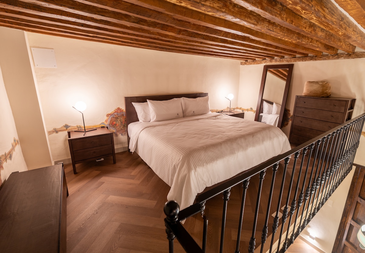 Habitación con cama Queen, ubicada en casona antigua del siglo XVI, se encuentra en el centro histórico.