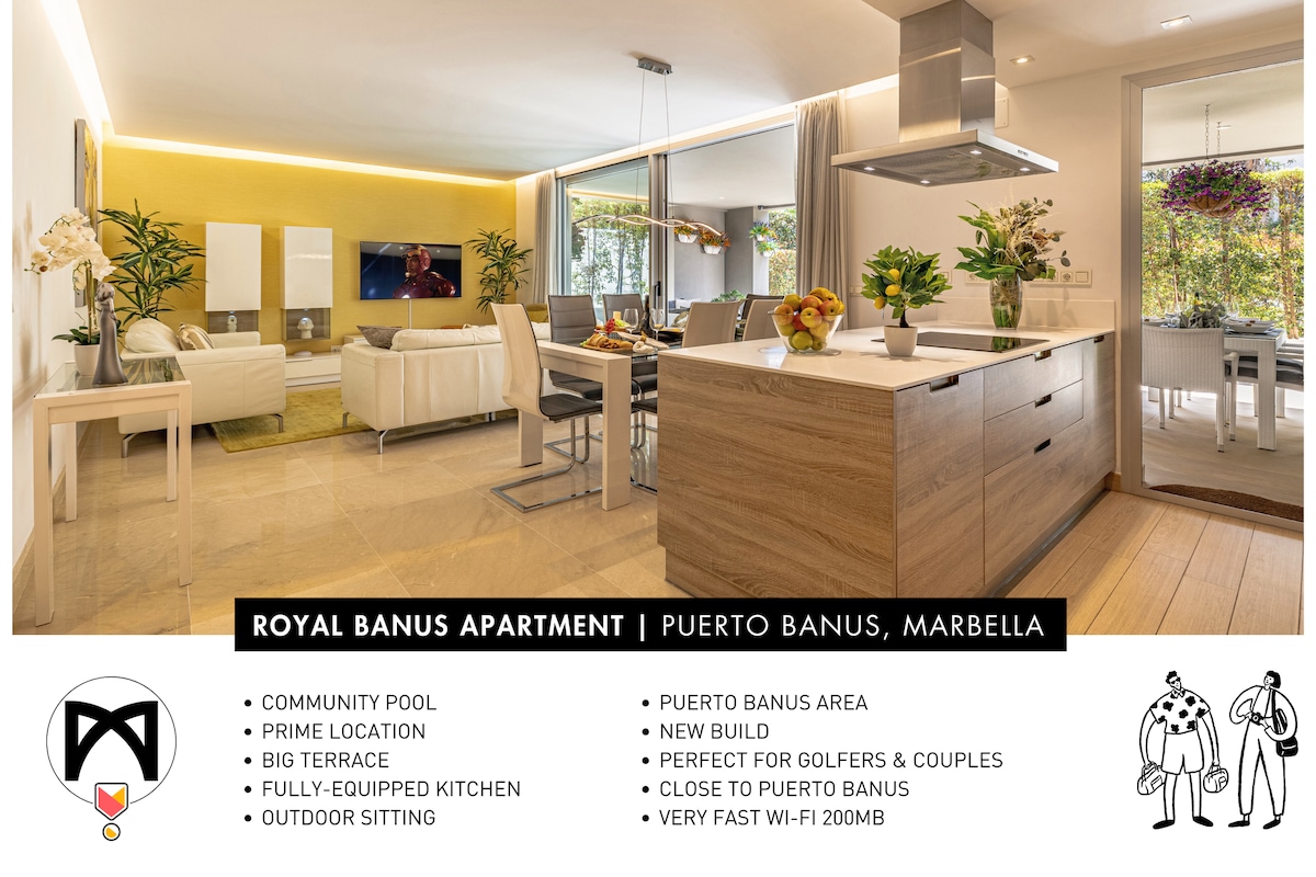 Experience Marbella with this stunning 3-bedroom, 3.5-bathroom apartment. Perfect for up to 6 guests, it offers modern elegance, cozy furnishings, and thoughtful touches. Enjoy a plush king bed, queen bed, and cozy double bed, along with 3.5 spacious bathrooms. The apartment features a fully equipped kitchen, bright living areas, and a terrace with BBQ. Located near the beach, Puerto Banus, and world-class golf courses, it’s ideal for relaxation, golf getaways, or exploring vibrant Marbella.