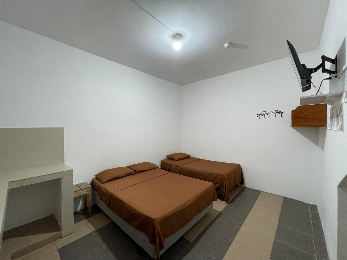 Quarto econômico localizado no sótão, ideal para jovens ou pessoas de estatura e constituição médias. Tem 1,65 m de altura e tem duas camas baixas: uma é uma cama de casal e a outra é uma cama de solteiro. Tem um banheiro privativo com água fria, sem chuveiro quente. Inclui internet Starlink, TV, ventilação natural e ventilador. Espaço aconchegante e funcional para quem busca conforto a baixo custo.
