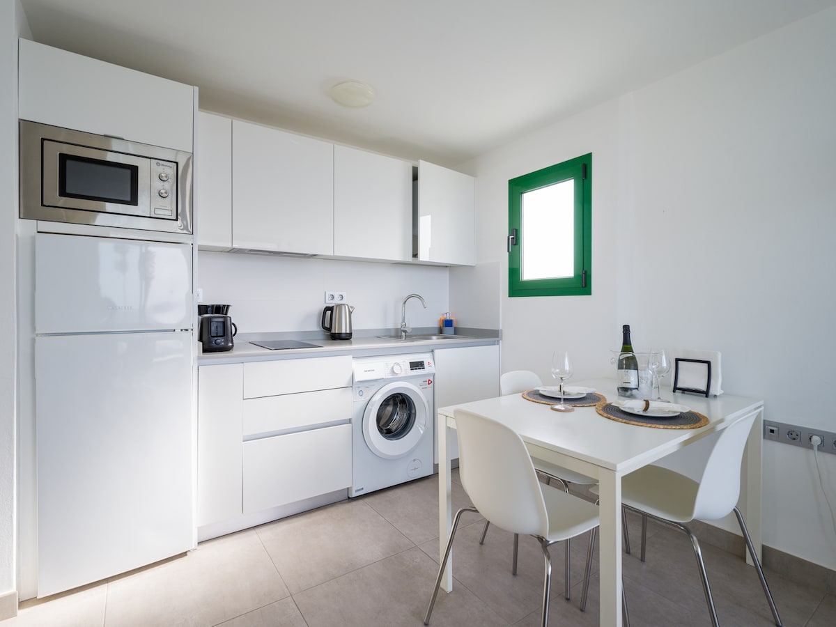 Apartamento acolhedor e novo perto da praia, a apenas dois minutos a pé. Com tudo o que você precisa para umas férias confortáveis: Wi-Fi gratuito, TV digital, máquina de lavar louça, forno, ar condicionado extra, entre outros. Está localizado na cidade velha de Puerto del Carmen, em uma área muito calma, ao mesmo tempo com todos os serviços próximos, como supermercados, restaurantes, centros comerciais, bancos, táxis, ônibus e centros esportivos.