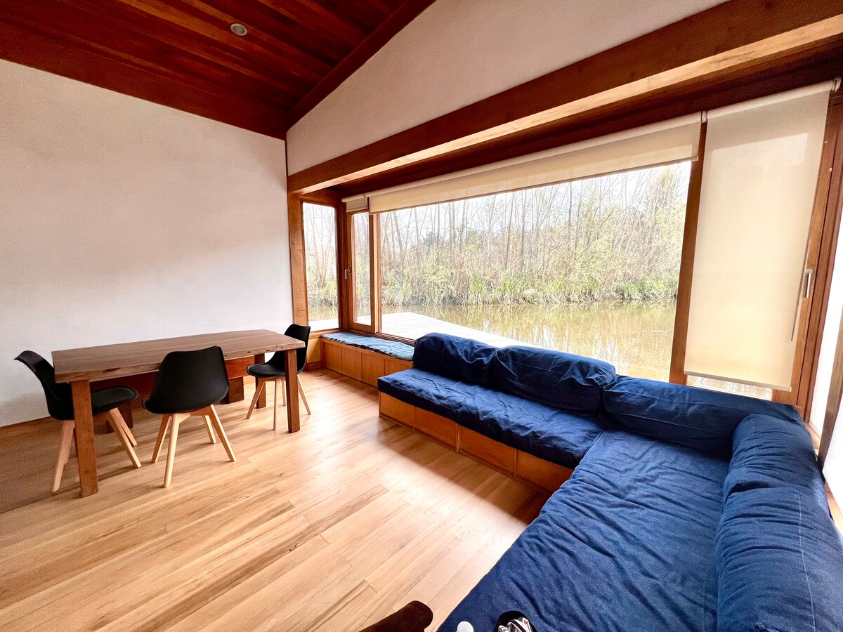 Do outro lado do rio ;) Esta casa encantadora e confortável foi criada em sintonia com o Delta. Ideal para 4 pessoas. Localizado a apenas 30 minutos da Estação Fluvial de Tigre (continente) por barco público ou táxi. Com 2 churrasqueiras ao ar livre e 1 interna, cais privativo e um espaçoso quintal, esta casa tem tudo o que você pode precisar para relaxar e desfrutar da natureza. Você pode caminhar, andar de caiaque, pescar ou apenas desfrutar de ler um livro no cais privativo. Localização tranquila e um anfitrião que está disposto a ajudá-lo sempre. Nenhum evento!