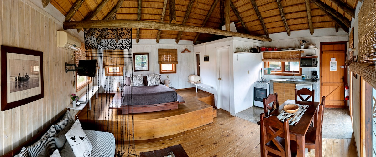 É uma pequena cabine feita de madeira.Ambiente muito quente,luminoso e romântico.Ideal para casais,viajantes ou mochileiros.Localizado no bairro DE LA Viuda.10 " minutos da praia.20" minutos da cidade(curta distância)