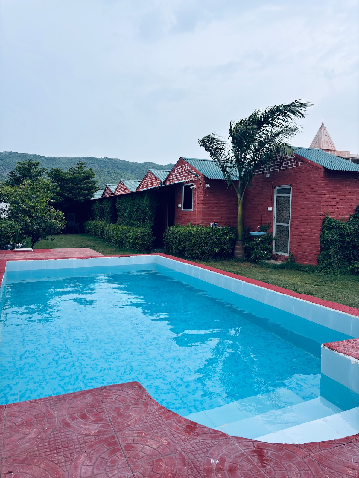 Our resort is a unique and ideal place to stay in Pushkar. Completely open space and surrounded by the Aravalli range. The mountain view from the rooms is amazing. The resort has a total of 20 rooms along with a well-maintained restaurant with a well-equipped kitchen and proper staff for cooking. Wide clean swimming pool and fully secured parking on the premises. All rooms are spacious and comfortable with bunk beds. All modern amenities like AC, Geyser, LED TV etc available in the room.