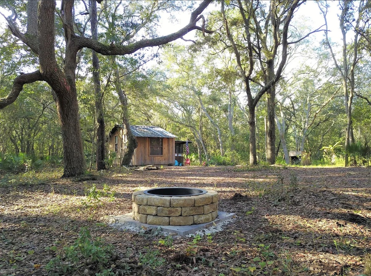 Caça vintage | acampamento de pesca, por volta de 1965. Fuja da cidade e relaxe na lagoa tranquila e alimentada por nascentes. Canoa da cabana para Little Lake Kerr via canal privado. A grande pesca está ao virar da curva, ou fora do cais. Convenientemente situado no meio da floresta nacional de Ocala, você estará a 5 minutos de Salt Springs. Silver Glen e Juniper Springs ficam a 15-20 minutos de distância. Esta cabana rústica é cercada por carvalhos vivos graciosos e é frequentemente visitada por animais selvagens como veados, ursos e grous de areia.