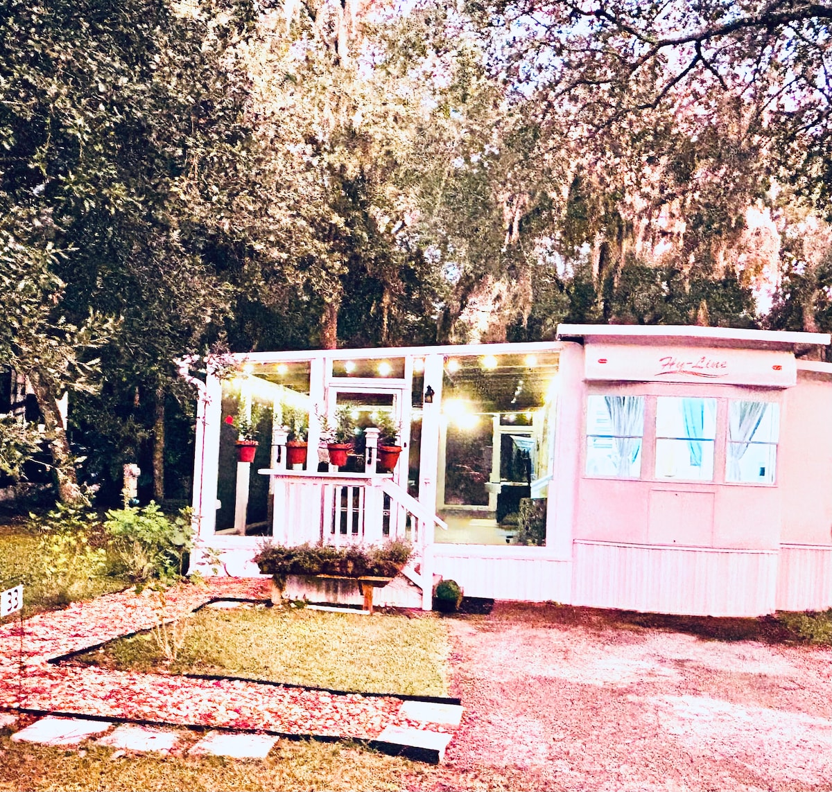 Bem-vindo ao Damon Nomad! Acampamento fechado à beira do lago. Não é necessário ter experiência em RV. Do outro lado da rua, nascentes de sal. A uma curta distância de carro de Silver Glen, Silver, Alexander e Jupiter Springs. O único trailer que conheço com uma cama king californiana. Toneladas de coisas para fazer se você gosta do ar livre. Pegue o carrinho de golfe para os restaurantes, loja de iscas, dólar geral ou apenas passeie pelos acampamentos. Taxa de check-in de US$ 20 para até 2 veículos. Se reservado, tente: www.airbnb.com/h/paulapuma www.airbnb.com/h/tinytina