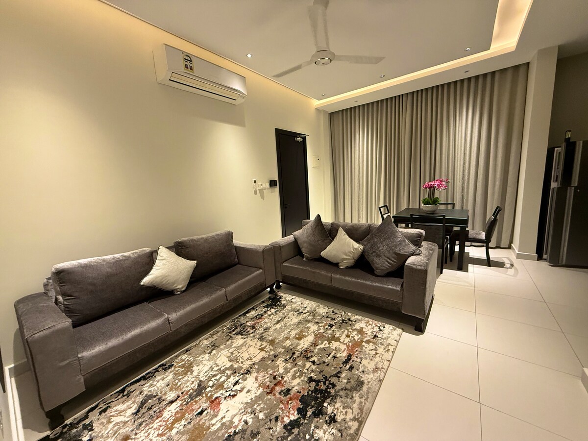Bem-vindo ao nosso luxuoso apartamento estúdio de 15 andares. Desfrute de uma Smart TV Curva de 65", Wi-Fi rápido, serviços de limpeza e uma cozinha totalmente equipada. Pizza Hut e um supermercado ficam a apenas 5 minutos de distância. Delicie-se com o banheiro luxuoso com todas as comodidades. Aprecie vistas deslumbrantes das janelas do chão ao teto. Experimente o máximo em luxo e conveniência neste apartamento estúdio excepcional. Ao olhar pelas janelas do chão ao teto, você terá vistas inspiradoras do 15º andar