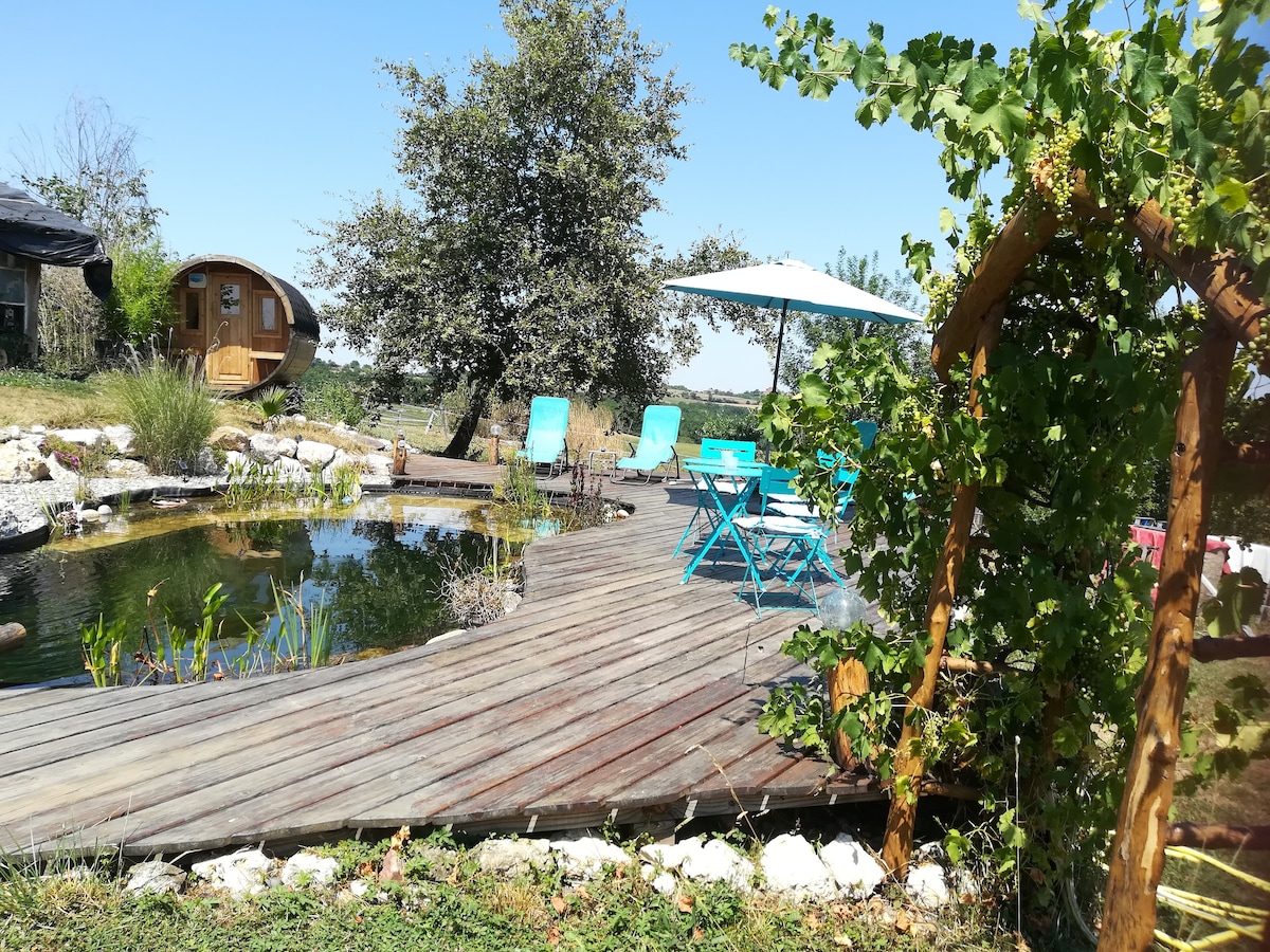 Bem-vindos aos nossos narcisos, casulos aos pés dos Pirineus! Venha passar uma noite de conto de fadas em um certeiro no meio da floresta selvagem!! Uma noite inesquecível neste ninho orgânico e élfico em meio às melodias de corujas e veados! Ideal para uma noite de amor, ou para um retiro de vários dias, para recarregar, meditar... Cabine/ cozinha sanitária compartilhada do outro lado! Piscina a 30m. Possibilidade de almoço e café da manhã. Numerosas caminhadas ao redor.