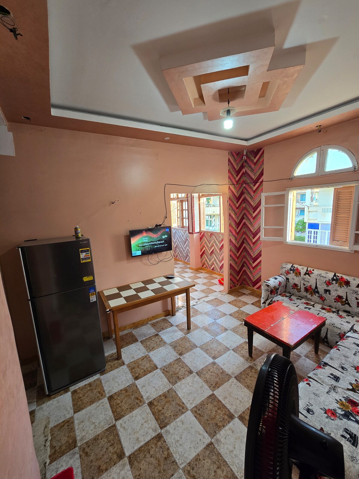 Charming design, view and location. The apartment provides all the pleasures and perks. A fully furnished private residence. Perfect for weekend getaways, business trips and work from home or cozy home base while exploring everything in ras el bar and damietta. Unbeatable location 5 mins walk to beach and pool with access to restaurant, cafe, mosque and market. 5 mins drive to nearby aquapark, circus and amusement park 10 mins drive to city center 20 mins to damietta 30 mins to New Damietta