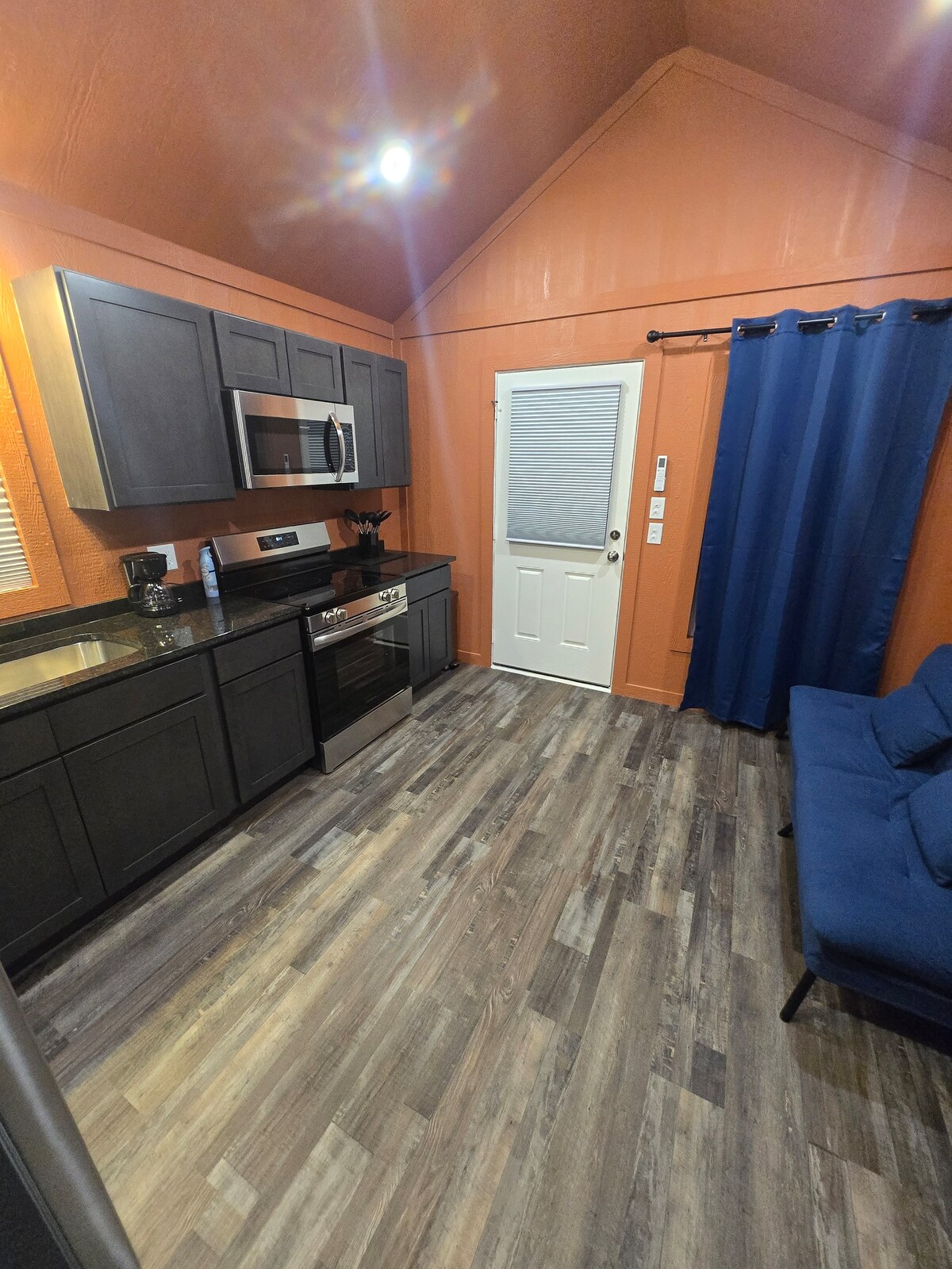 Fuja para nossa encantadora fazenda. Mergulhe em uma luxuosa cama king-size e desfrute de um espaçoso chuveiro. Uma grande lavanderia adiciona conveniência. Liberte o seu chef interior na cozinha totalmente equipada. Desfrute de entretenimento na TV de 65 polegadas com serviços de streaming na sala de estar. Desconecte-se do barulho do dia a dia. Reconecte-se com o que importa. Relaxe, rejuvenesça, crie memórias duradouras.