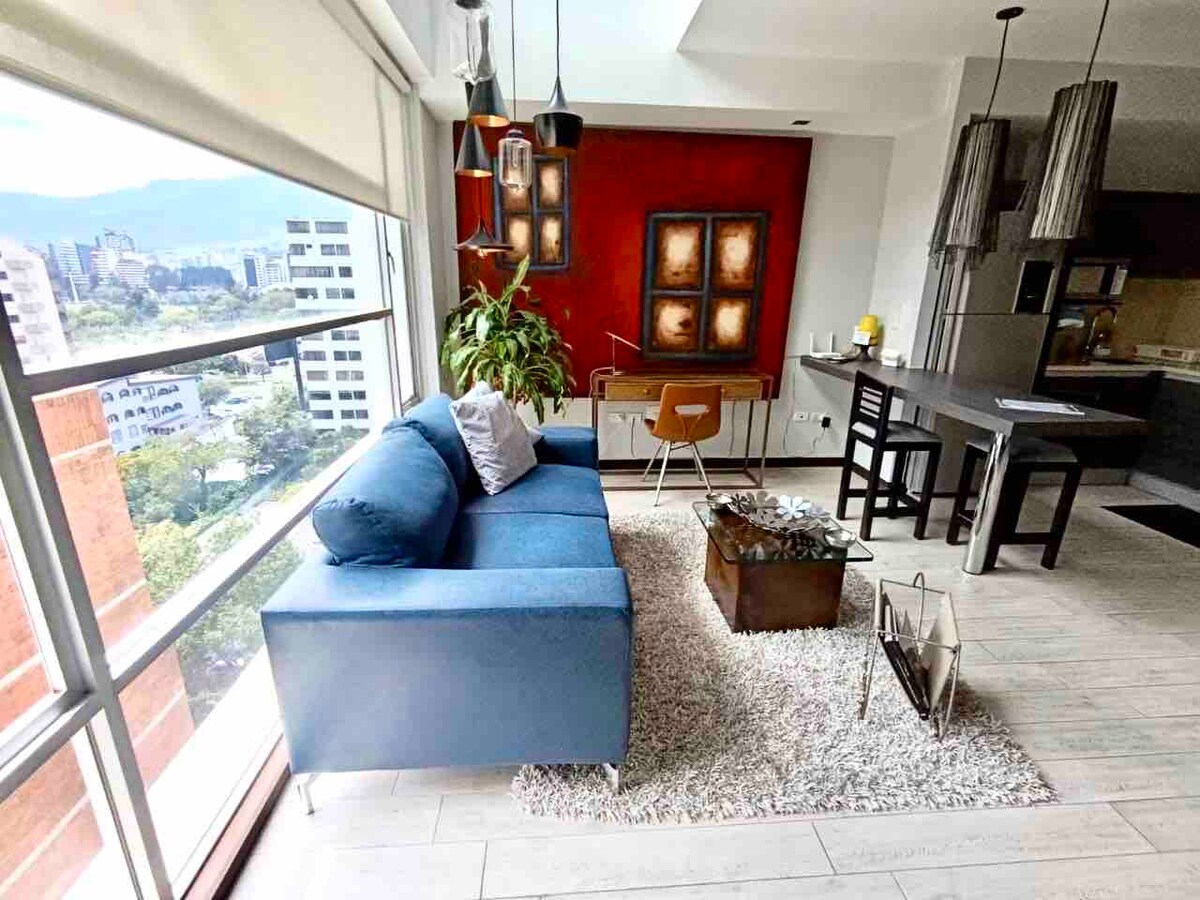 Bienvenidos a este hermoso y amplio loft que se encuentra en una de las mejores ubicaciones de Quito sector (Parque La Carolina, Republica Del Salvador), perfecto para una estancia confortable y relajante. Tiene un diseño moderno y elegante a doble altura, cuenta con un cómodo balcón y grandes ventanales que permiten el acceso a luz natural, además te brindan una hermosa vista hacia la Av.Portugal y Av. 6 De diciembre.