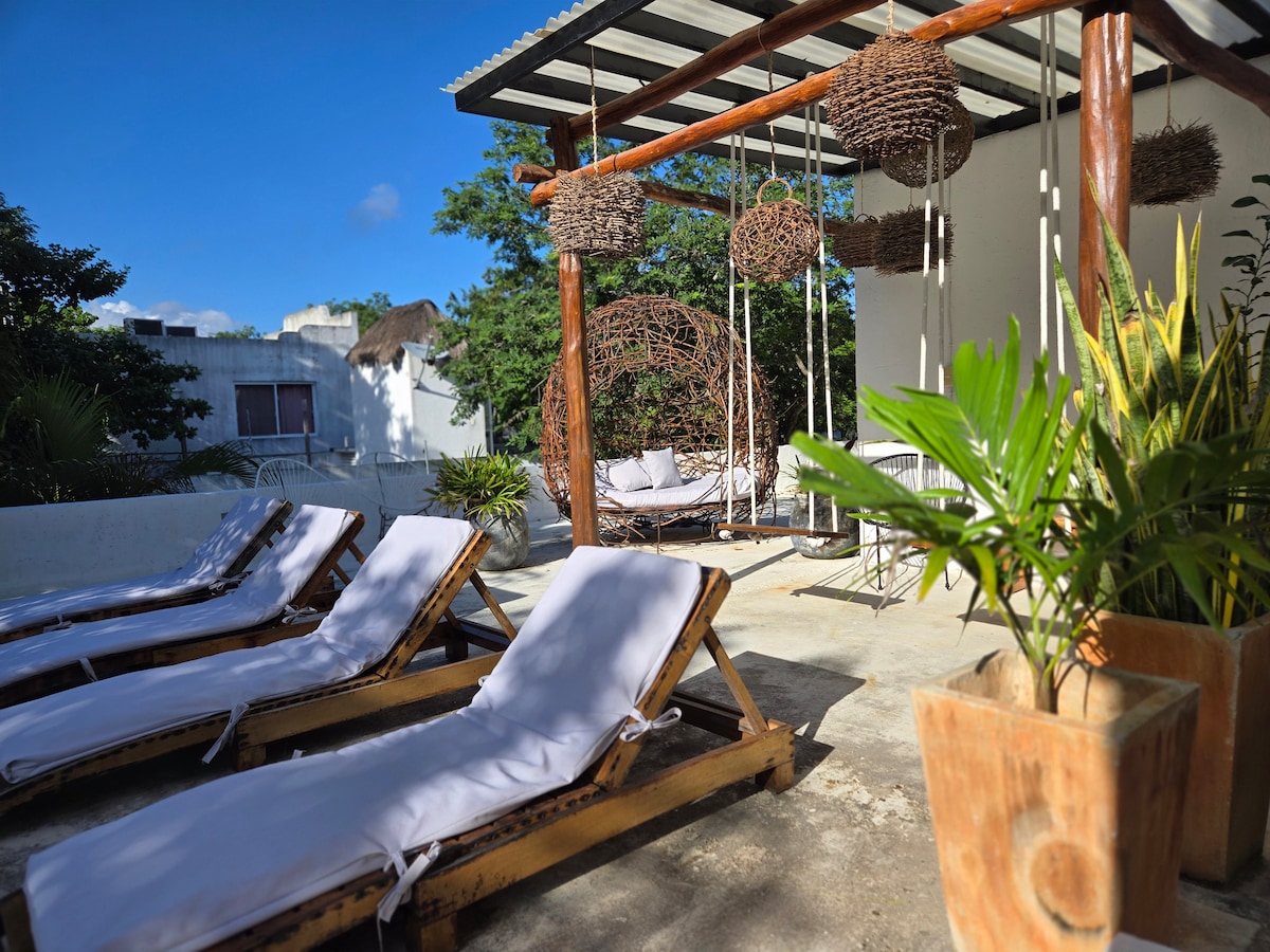 Apartamento moderno, apenas para adultos, em um bairro tranquilo a poucos minutos do centro da cidade. Os hóspedes adoram o ambiente tranquilo e retornam frequentemente para a piscina no terraço, a área de churrasco e o serviço de limpeza diário. Navegue pela costa em bicicletas gratuitas ou explore lojas e cafés próximos. ✔ Piscina no terraço ✔ Starlink WiFi ✔ Bicicletas grátis ✔ Cozinha completa Segurança ✔ noturna ➕ 7-Eleven a apenas uma quadra de distância Bônus: 10% de desconto em mergulho com a Scuba Life Cozumel, uma empresa com excelentes avaliações. Apenas para maiores de 12 anos.