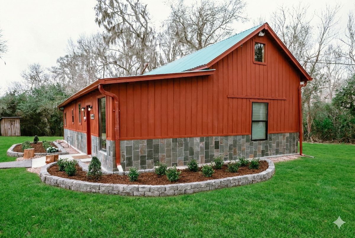 The Barracks em Cedar Oaks Inn Entre na história com esta cabana restaurada da base da Força Aérea de Ellington de 1917. Repleto de antiguidades e arte original, combina charme atemporal com conforto. Aproveite o pátio dos fundos com cozinha ao ar livre, lareira, fonte de água e um banheiro de jardim exclusivo com banheiras de pé de garra lado a lado e um chuveiro ao ar livre. Tome café ou vinho na varanda da frente enquanto observa as galinhas. Este retiro é tão peculiar quanto relaxante e aceita cães (de até 13,6 kg).