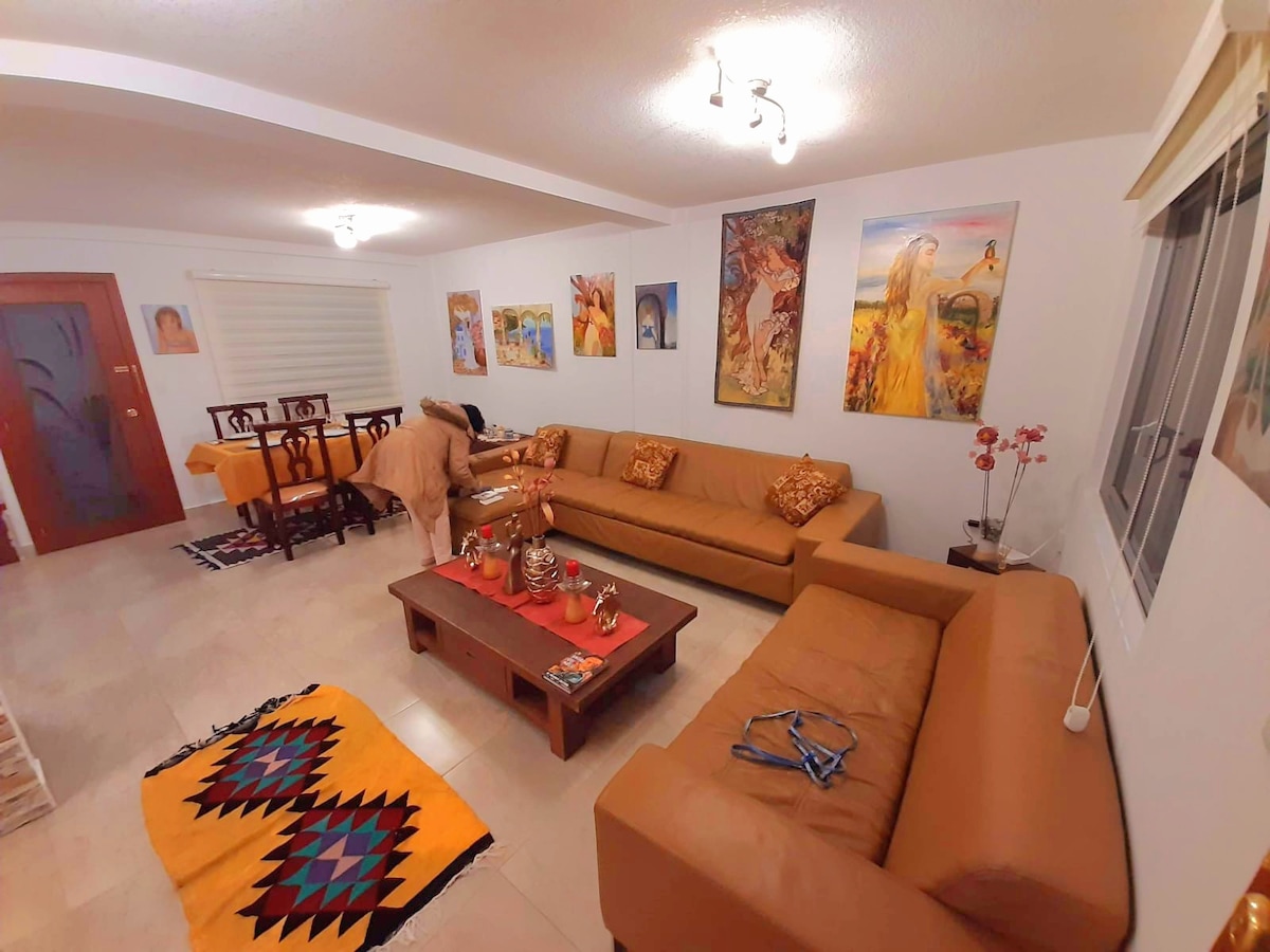 Imagine waking up surrounded by mountains, fresh air, and silence in a place where time slows down and your soul can breathe in a warm, fully furnished home designed with love and artistic touch. A Space for families, couples, or creative souls (up to 5 guests). A this peaceful, safe gated community surrounded by nature, enjoy your morning coffee with mountain views, Quiet walks in nature, Easy access to volcanoes, hot springs, cities, Amazon. A perfect base to explore Ecuador… or simply rest.