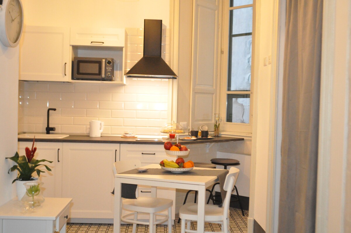 Apartamento elegante, luminoso e novo de 105 m2 localizado num edifício de estilo barroco a poucos passos do centro da cidade 2 quartos com ar e colchões ortopédicos, alergias e TVs 2 Banheiros independentes 1 Sala de jantar e cozinha totalmente equipada 1 Lounge com varanda e TV de tela plana de 50'' 2 sofás-cama grandes com colchões de espuma de excelente memória Conexão Wi-Fi rápida gratuita, piso cerâmico, O apartamento tem 2 varandas com vista para a cidade. Estacionamento gratuito na rua