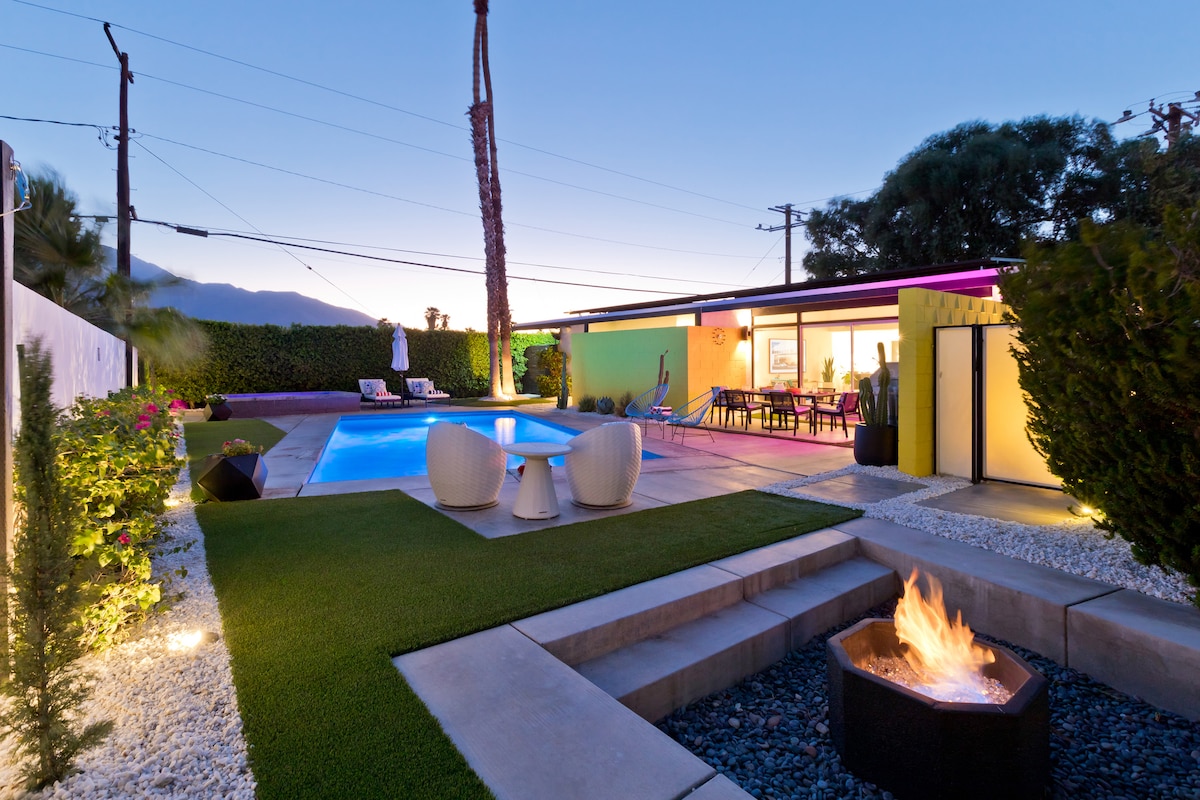 Fuja para uma casa moderna de meados do século Krisel Alexander com um quintal estilo resort! Esta joia histórica tem piscina e spa privativos, perfeitos para relaxar depois de um dia em Joshua Tree ou explorar o Vale de Coachella. Mergulhe nas vistas da montanha em seu oásis isolado. Número de identificação da cidade de Palm Springs: 1781 No interior, você encontrará o charme de meados do século. Com 3 quartos e 2 banheiros, a casa acomoda confortavelmente 6 pessoas - ideal para relaxar à beira da piscina, grelhar ou desfrutar da fogueira.