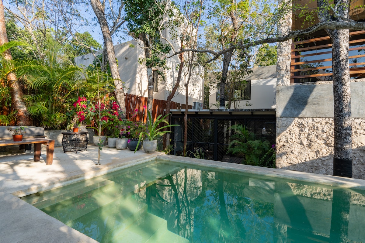 Este é apenas um dos lugares mais bonitos de Tulum: jardim exuberante na selva, uma bela piscina, um lounge ao ar livre e uma cama de sonho com cozinha espaçosa em um dos edifícios mais bonitos do México! ***Há Internet Wi-Fi de fibra ótica neste apartamento com conexões de 150 Mbps para atender vários hóspedes ao mesmo tempo. Esta rede é apenas para este apartamento específico. Há, mediante solicitação, um upgrade para 200 Mbps possível por um custo extra.